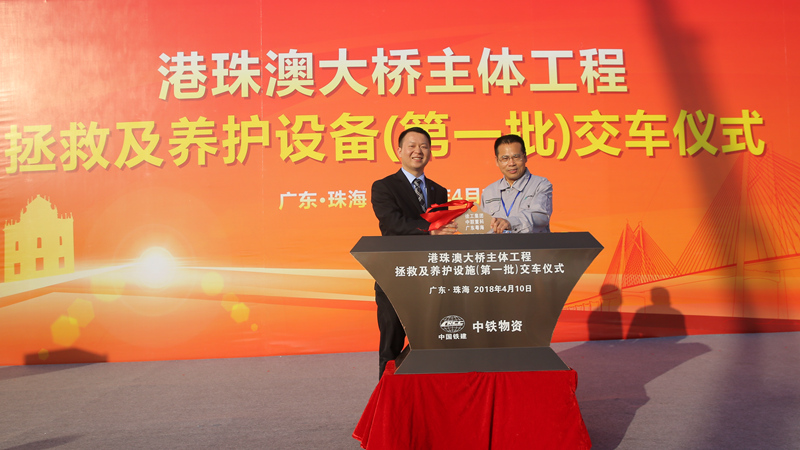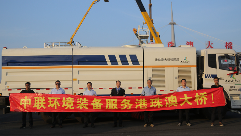 4月10日,港珠澳大橋主體工程(第一批)拯救及養護設備交車儀式在珠海隆重舉行,由盈峰集團控股企業中聯環境提供的一批道路保潔和市政養護裝備正式交付港珠澳大橋管理局使用。