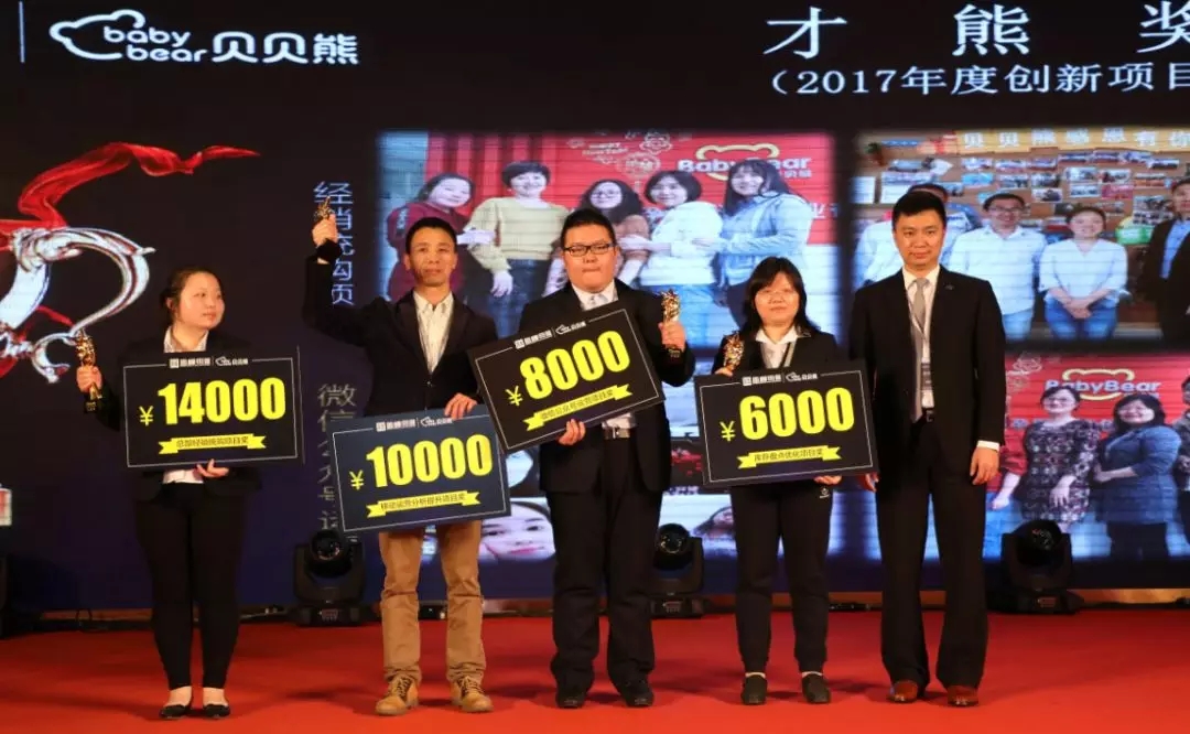 過去的2017年里,公司涌現(xiàn)出一大批優(yōu)秀管理者及員工,他們在自己的工作崗位上、領(lǐng)域里施展著才能,有著突出的表現(xiàn)。現(xiàn)場對讀書分享會組織—智熊獎;內(nèi)訓(xùn)師—博熊獎;促銷員—助熊獎;年度全國十佳育嬰師、十佳泳療師、十佳員工—精熊獎; 店長—棒熊獎;區(qū)域經(jīng)理—帥熊獎;雙品類達成—猛熊獎;創(chuàng)新項目—才熊獎;十項全能分公司—金熊獎在內(nèi)的十一個大獎,數(shù)十位優(yōu)秀員工進行了表彰。他們是真正的英雄,時間是公平的,唯有加倍努力才能獲得成功。業(yè)績導(dǎo)向,以奮斗者為本的激勵模式仍然將是2018年的主旋律!
